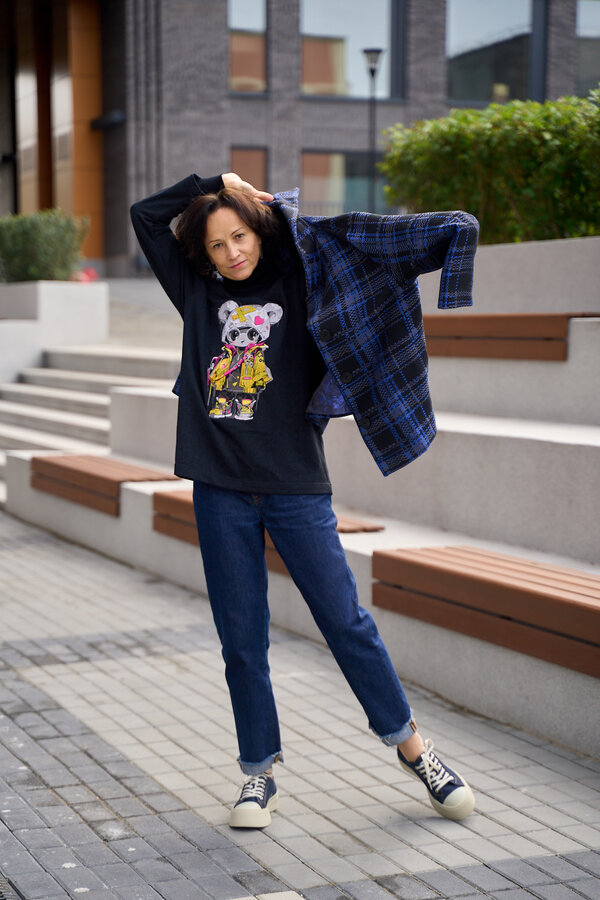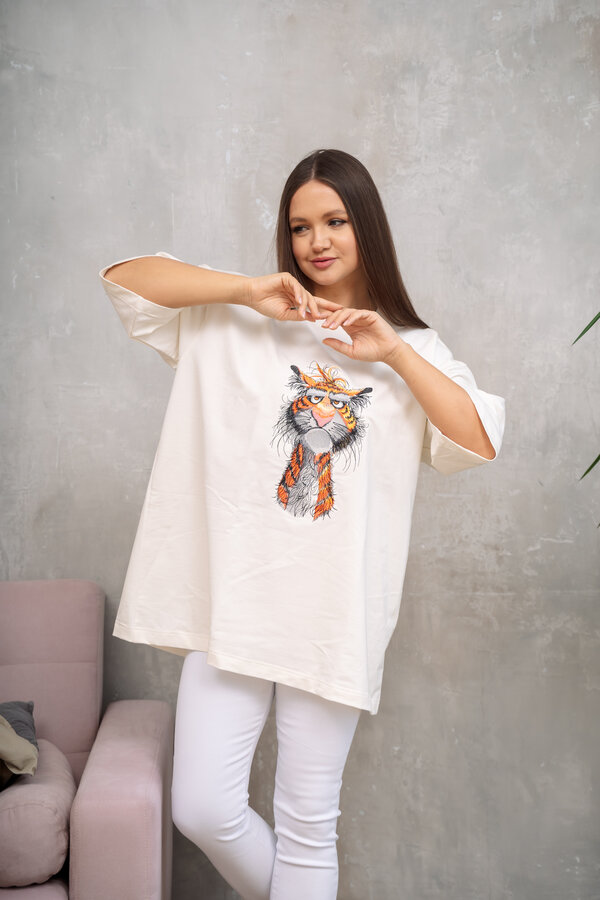Сейчас: Работаю ]Лонгслив из хлопкового трикотажа премиального качества - футер 3х нитка с вышивкой "Кошка на стиле"