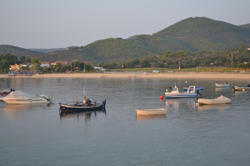 Пляж в Торони хороший, песок необычный , похож на рис, приятный такой )Недалеко паркуются лодочки: