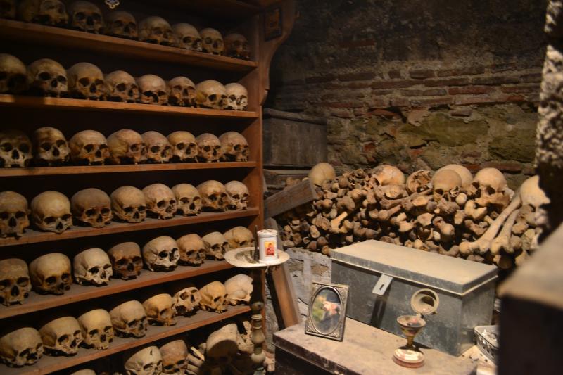 Еще странная традиция хранить в монастыре черепа бывших монахов.