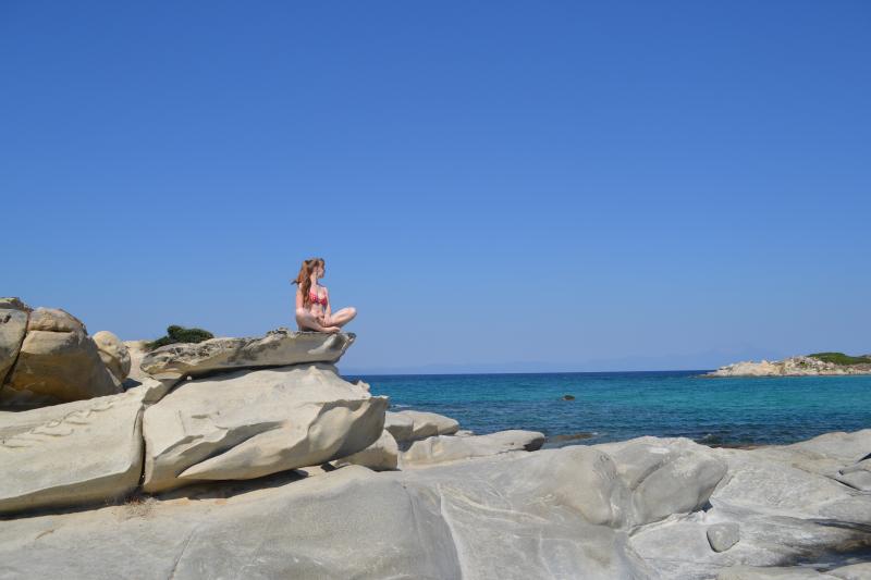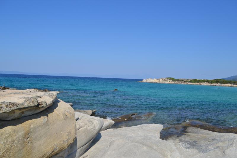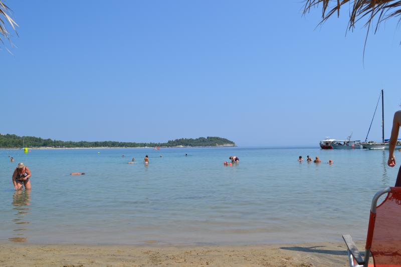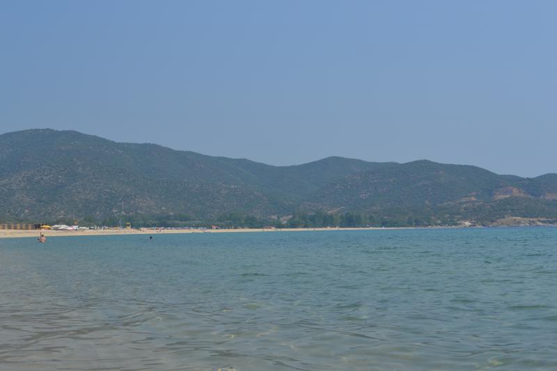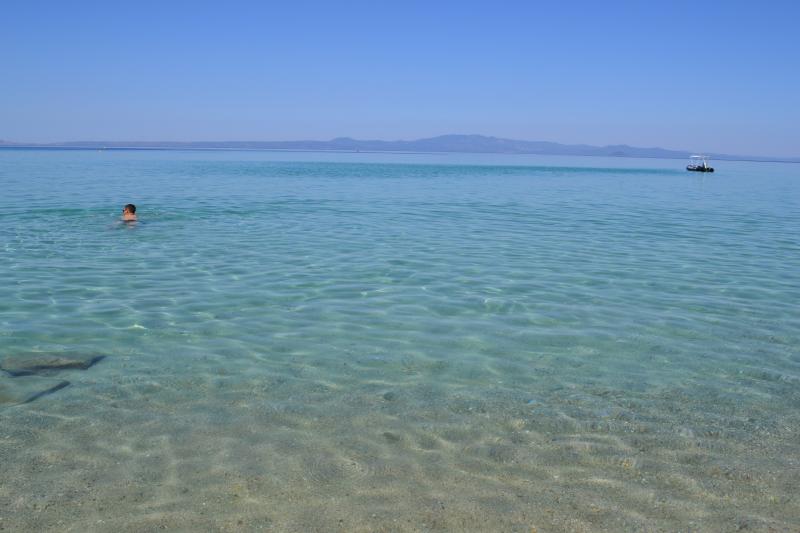Взяли машину в Калифее (обойдя порядка 6 контор рента кара) и поехали сначала по нашей Кассандре. Понравился пляж у мыса на юге, мелко метров 50-70 от берега, чисто. Под ногами мелкие рыбешки: ребенок в восторге:
