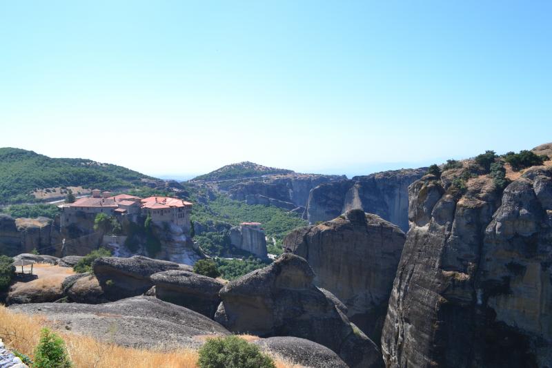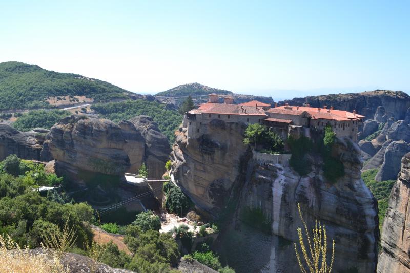 Метеоры. Ехдил муж. Мы сидели в отеле, отдыхали от солнца. На авто 3,5 – 4 часа в одну сторону. Дорога хорошая, скорость тоже. от Салоников до Метеор есть платные участки. Доступно. Горами любителей Горного Алтая не удивишь, а вот скалами и расположенными на них монастырями на скалах очень даже! Меня впечатилили даже фото, отснятые мужем. Зашел в 4 из 6ти действующих. Музенидис возит с посещением одного монастыря. Дорога долгая и ради одного…ну не знаю. Лучше на авто самим. Вход в монастырь недорого 2-3евро. Когда тумал и подножия скал не видно кажется, что монастыри парят в воздухе.