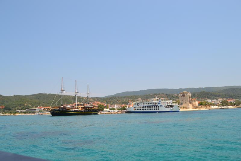 На следующий день план: на авто до Ураноуполли +круиз к Афону. Приехали, покупались, правда пляж не очень)Покушали вкусно в таверне на берегу.