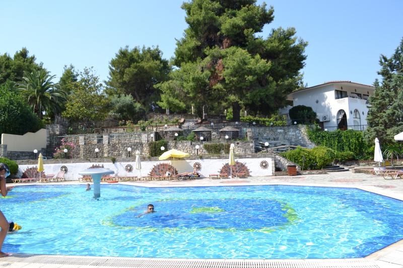 Зоопарк Салоников. Вход бесплатный (мы честно долго искали кому бы заплатить, в России бы таких нашли, тут нет )))). Ехать с Халкидик в сторону Салоников, потом направо по кольцевой и свернуть на Агиос Павлос. Зоопарк скромный, но хороший с мишками, птичками, павлинами, волками, кроликами…. Ребенок кормил почти всех крекером. Понравилось, что в лесо-парковой зоне, т.е. тень и не жарко днем.