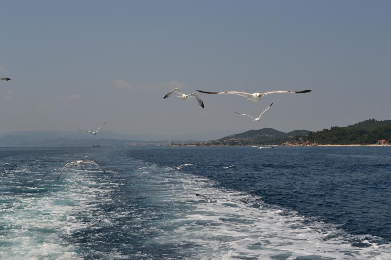 Дальше вперед на корабль в круиз Вокруг Святого Афона. Кораблик 18евро вроде стоит билет. Поездка 3часа. Монастыри действительно чудесные, природа издалека с моря видно, что нетронутая и оберегаемая. По дороге нас атаковали ранее прикормленные чайки: красиво конечно. Плывешь, ветер в лицо, в метре от тебя кружат чайки и ты в 300хстах метрах от святой земли. На сам Афон вход разрешен только мужчинам при наличии спец.разрешения. Женщине возможен год тюрьмы если ступит...