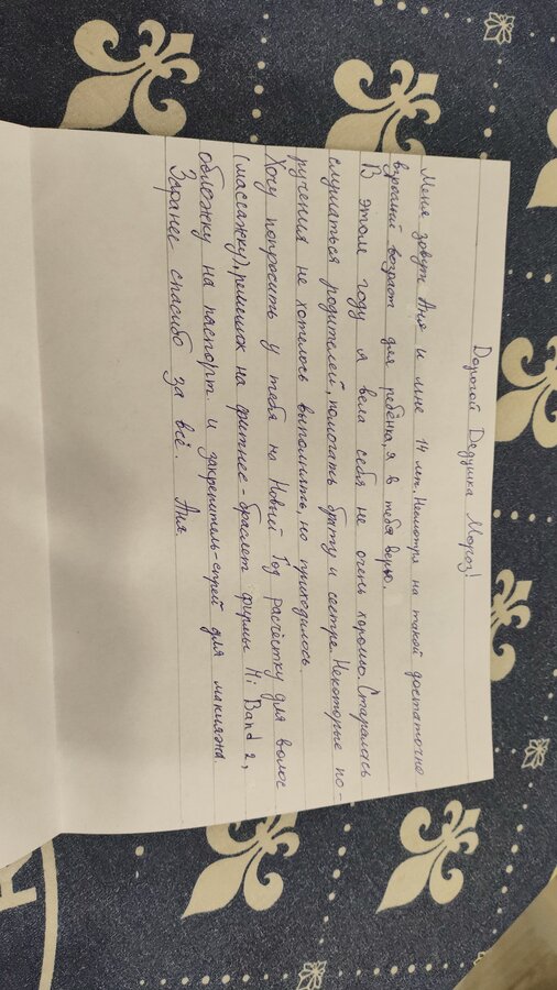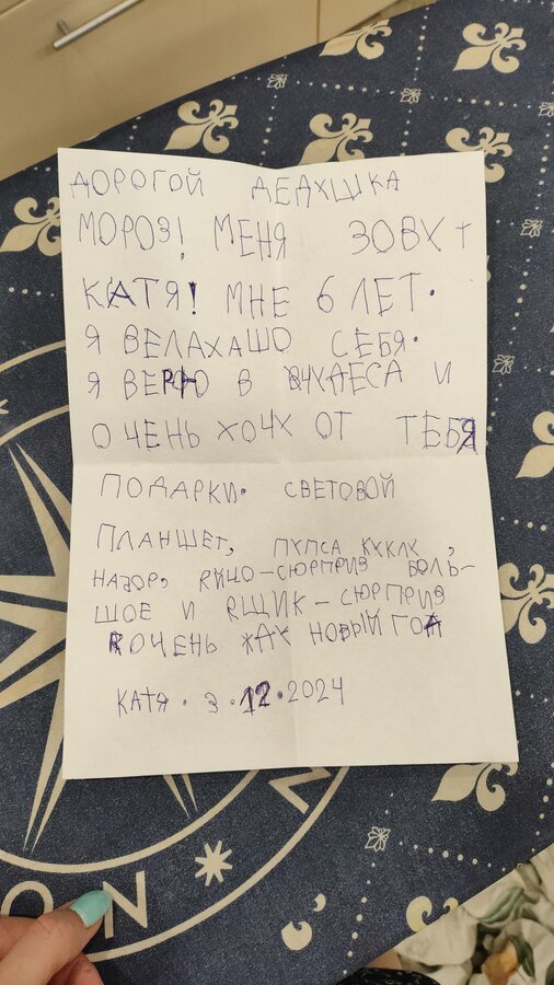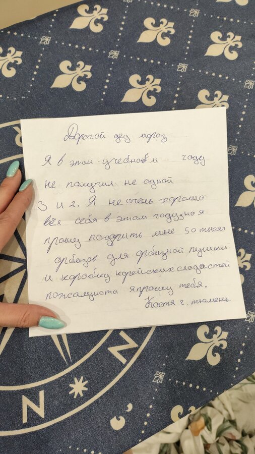 Вообще в прошлом году она вообще в конверт запечатывала и все рвалась сама до почты сходить. Самое главное в моем личном кабинете на ВБ нет в истории покупок этих их запросов ,дома тоже нет, пусть верят дальше в деда мороза, раз то в год я могу им в этом помочь ![]() |